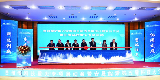 12月19日,贵州省科技重大专项启动会暨贵州安晟能源有限公司(简称安晟能源)第五届科技大会召开,省科技厅党组成员、副厅长安守海,省能源局党组成员、副局长刘晓阳,国家矿山安全监察局贵州局党组成员、副局长许振宏出席会议并致辞。中国科学院院士何满朝作《矿山压力的转化及开采新工法》主旨报告。会议对安晟能源优秀科技成果和科技创新先进单位、先进个人进行了表彰奖励。